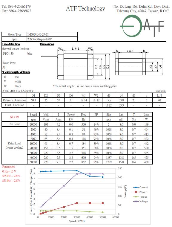 ホーム 馬達型錄 旋轉馬達 感應馬達(IM) IM60D-L40-2P-SI-2.2kW-30krpm-220V-Al